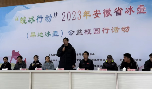 本次活动,由安徽省体育局田径游泳运动管理中心主办,蚌埠市文化体育旅游局、安徽省冰球协会、蚌埠市学海路学校、安徽迈象体育有限公司、蚌埠工商学院承办,活动以“公益校园行 畅享冰壶情”为主题,省体育局田径游泳运动管理中心副主任赵涛,教育部校园冰雪专家、省冰球协会秘书长张爱臣、原国家冰壶队教练刘斯佳以及蚌埠市相关负责人出席活动。