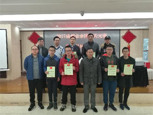 由成都市棋牌运动管理中心、成都晚报社主办的2017成都业余围棋天元赛暨晚报杯成都晚报队选拔赛12月3日在成都棋院四楼对局大厅收子,经过三天七轮的激烈角逐,最终去年的亚军、小将王竣啸以全胜的战绩,登上了冠军宝座,并获得一万元的奖金,郝岳鹏、晋礴戬分茯亚军和季军,童昕、冯湧、李晓军、高若环、涂希懋分列第四名至第八名。
