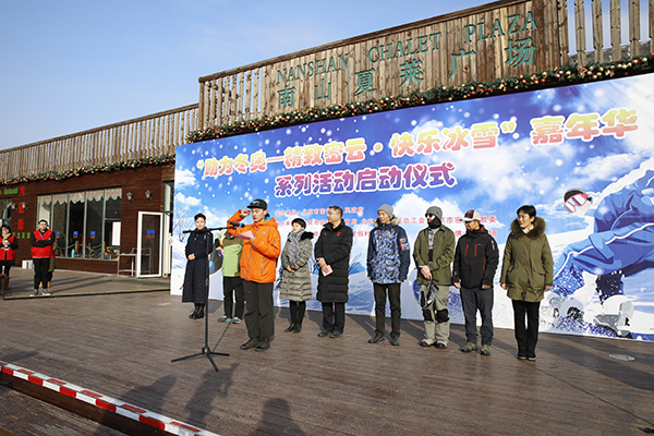 “助力冬奥—精致密云·快乐冰雪”嘉年华系列活动,1月7日,在北京密云南山滑雪场举行了启动仪式。本次冰雪嘉年华活动由北京市密云区人民政府主办,密云区体育局、密云区总工会、密云区教委、北京南山滑雪滑水度假村有限公司和北京云佛滑雪场共同承办。北京市体育局副局长祁敬婷,密云区区委常委、宣传部部长解江凌,密云区政协副主席、区总工会主席何丽娟出席本次嘉年华开幕式。